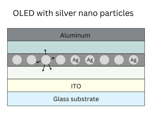 This was my first research project, and I worked with PhD students to understand the problem and did multiple simulation experiments. The project aimed to improve the light extraction efficiency of OLEDs and was a collaboration between the Photonics lab (IIT Roorkee) and Moeser Baer company. Much light is lost when the generated light travels from the first layer to the final layer. To increase light transmission, I researched using silver nanoparticles. The key advantage of silver nanoparticles is that they absorb light and scatter light. I used Lumerical FDTD software to simulate the structure and environment and ran experiments to design the best possible structure to improve efficiency.