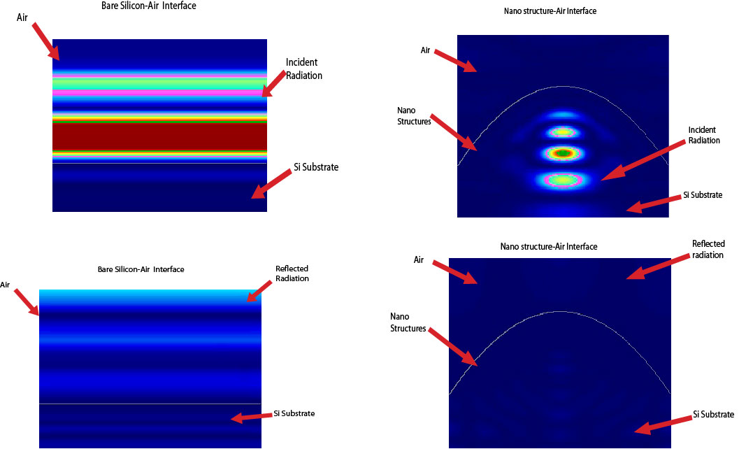 I took this problem for my master's thesis. I'm a big fan of bio-mimicry. I often find ideas when I'm on a hike or away from the city and immersed in nature. After some research, I found that moth's eyes have a special anti-reflection coating that helps the moth to hide its presence from the predator. I built upon some existing research and redesigned my solar PV. I did several simulations and optimisations to find the best arrangement to minimise loss over a wide range of wavelengths. My design has less than 1% reflection loss over a wide range of wavelengths.